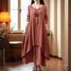Women’s linen cotton dress long sleeves dress linen loose dress linen maxi dress oversized clothing plus size dress spring dress A15